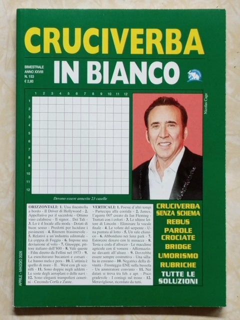 L´ultimo numero di Cruciverba In Bianco è uscito in edicola ed è in vendita online qui (salvo esaurimento scorte, vedi sotto) al prezzo di 2,80 .
