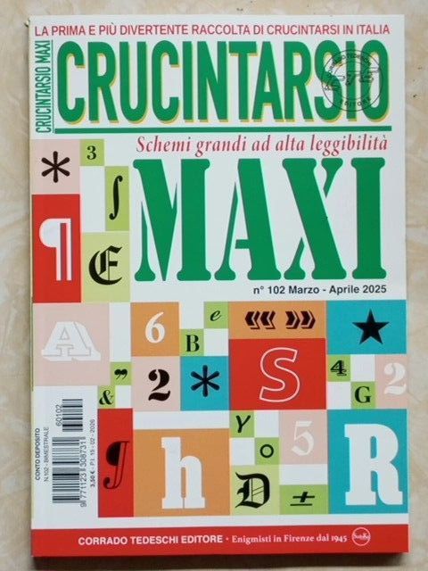 L´ultimo numero di Maxi Crucintarsio è uscito in edicola ed è in vendita online qui (salvo esaurimento scorte, vedi sotto) al prezzo di 3,50 .