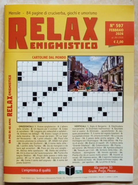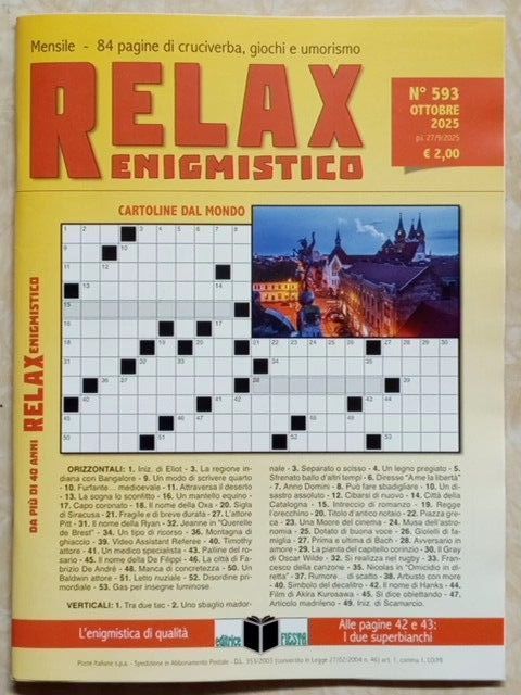 L´ultimo numero di Relax (Enigmistico ) è uscito in edicola ed è in vendita online qui (salvo esaurimento scorte, vedi sotto) al prezzo di 2,00 .