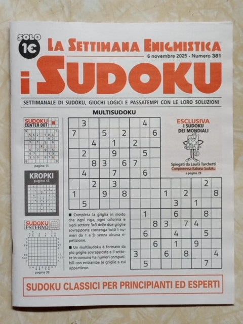 L´ultimo numero di Sett.Enigm.I Sudoku è uscito in edicola ed è in vendita online qui (salvo esaurimento scorte, vedi sotto) al prezzo di 1,00 .