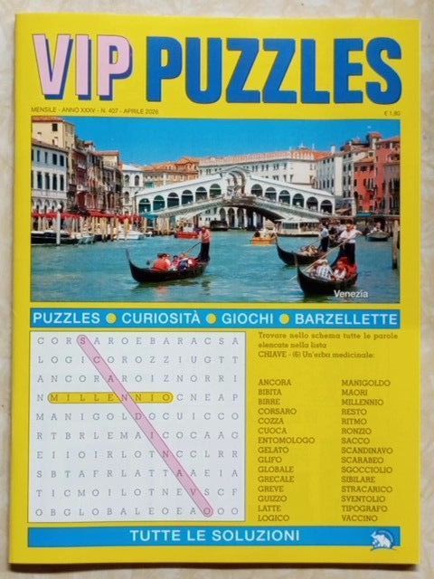 L´ultimo numero di Vip Puzzle è uscito in edicola ed è in vendita online qui (salvo esaurimento scorte, vedi sotto) al prezzo di 1,80 .